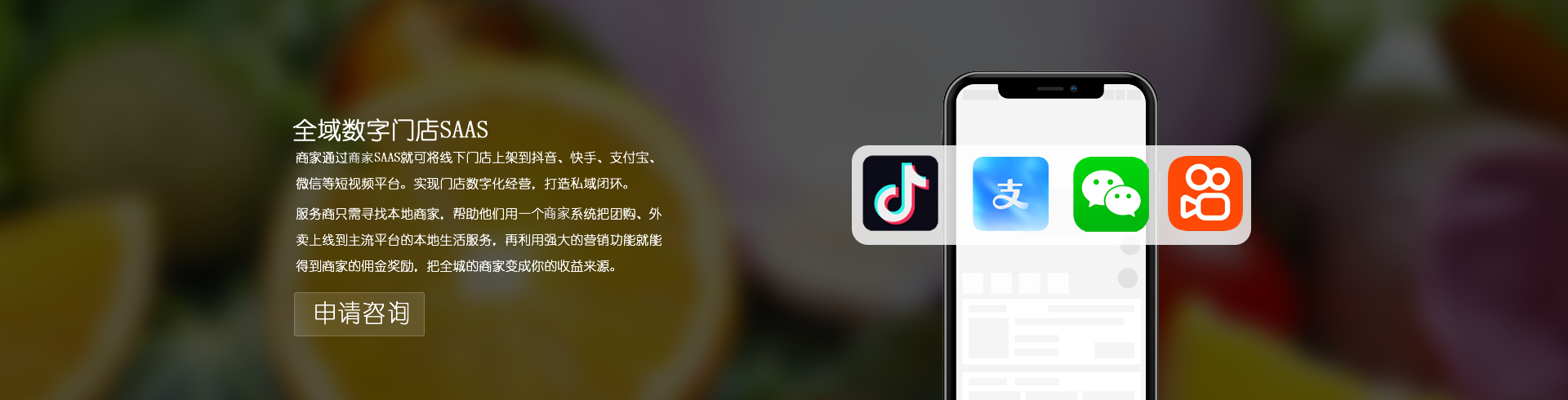 入驻SAAS,上架各大平台短视频团购、外卖、通过系统强大的营销功能获取经营能力